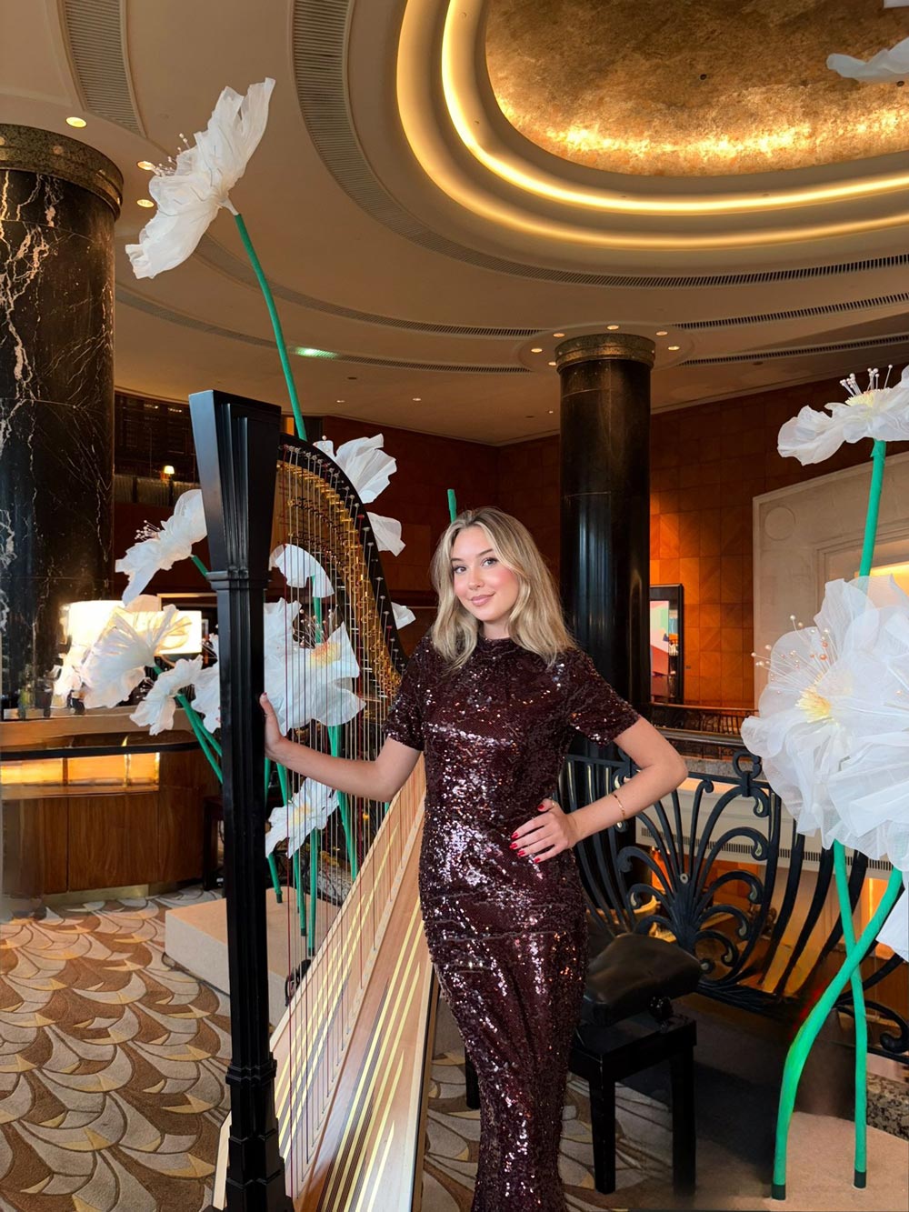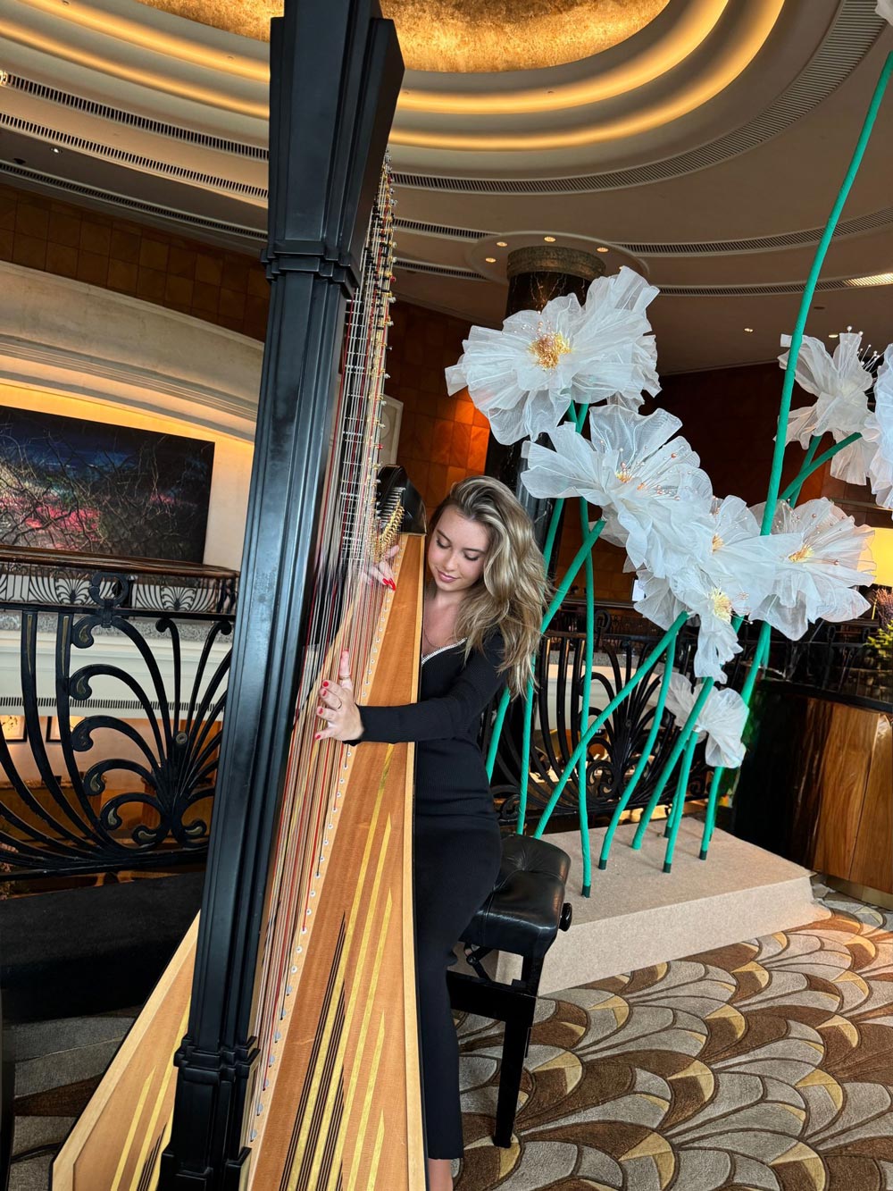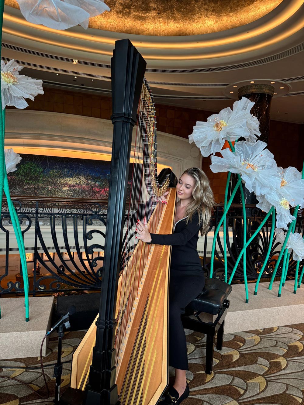 In Amie’s hands, the harp becomes more than an instrument—it becomes the soul of an event, its elegant sound weaving through the atmosphere like a thread of pure luxury. With a repertoire that spans classical masterpieces, contemporary arrangements, and custom compositions, Amie curates each performance with meticulous attention to detail. Every note she plays is designed to reflect the essence of exclusivity and sophistication that defines her clients’ world.